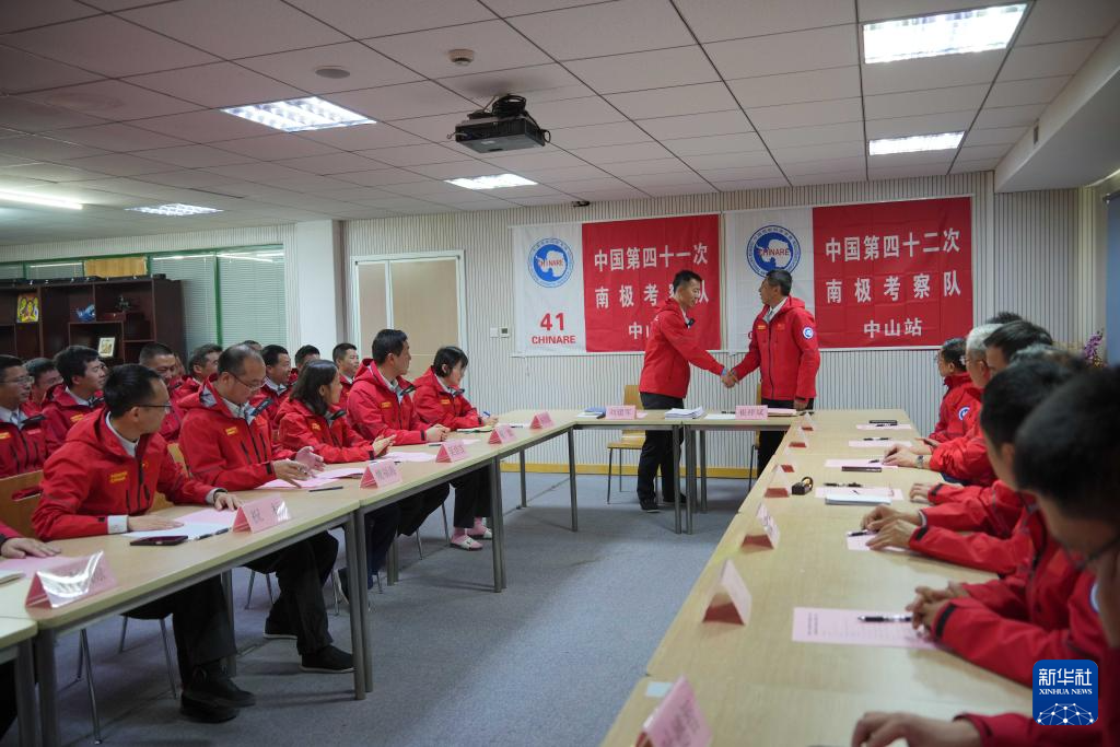 当地时间12月12日上午,中国第41次、42次南极考察中山站越冬队完成交接。图据新华社