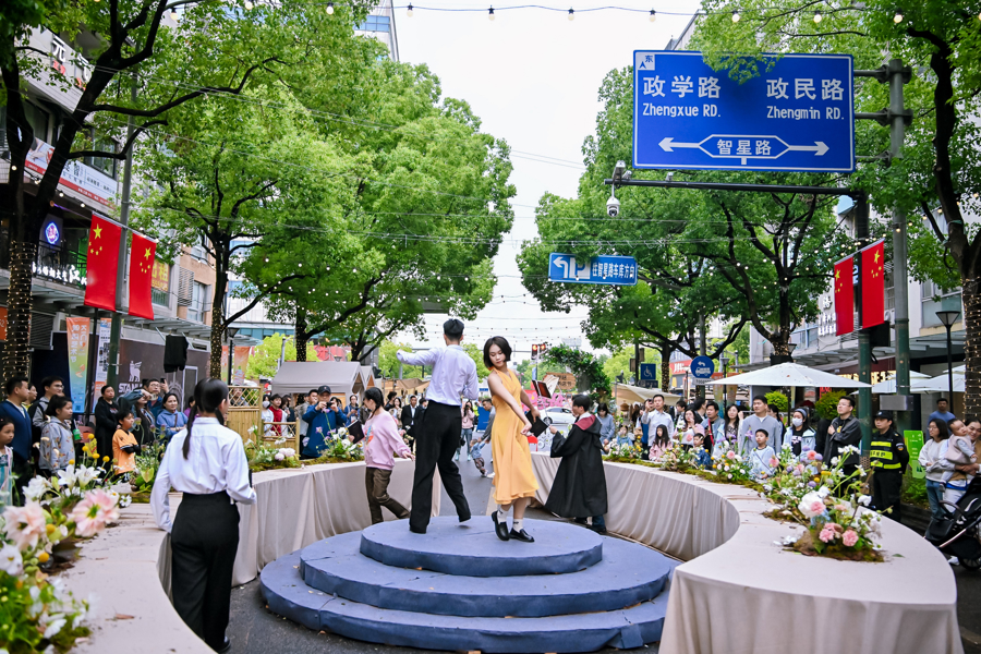2025KIC知识艺术节期间,大学路限时步行街化身戏剧舞台,“美好书店节”等系列主题活动带领路人体验“无界的大学”。 KIC资料图片